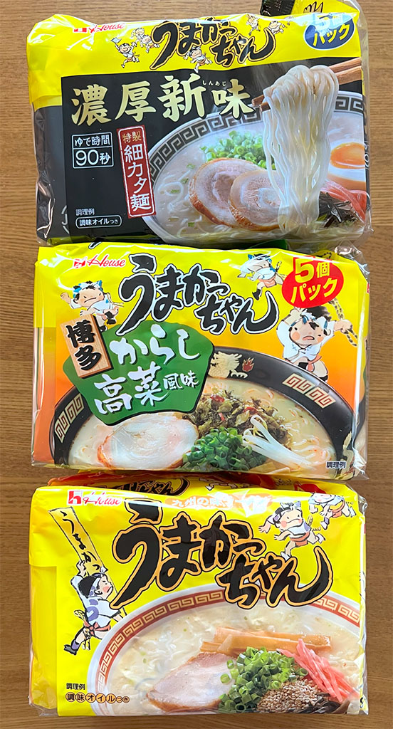 ハウス食品グループ本社(株) [2810] 株主優待 X Facebook はてブ LINE コピー 2025.08.302025.09.01 6月6日の記事で案内のあったハウスの優待が届きました。「ラーメンセット」としていただきました、「うまかっちゃん」です。三種それぞれ5個パックを一つずつ。うまかっちゃん、こどもが好きなので喜んでいました。 無印 濃厚新味 博多からし高菜風味 ハウス食品グループ本社(株) [2810]ハウスから「株主優待のご案内」が届きました。200株保有で2,000円相当の品を頂いています。先日日清食品からラーメンをたくさんいただいたばかりですが、うまかっちゃんおいしいのでラーメンセットを頂こうと思っています。