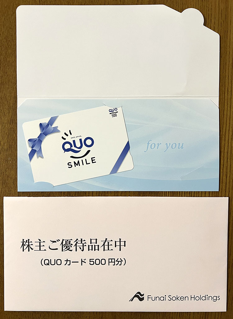 (株)船井総研ホールディングス[9757] 株主優待 X Facebook はてブ LINE コピー 2025.09.012025.09.03 船井総研からQuoカードをいただきました。100株なので500円分です。今までは12月末の基準日に保有することで年1回いただけていたところ、このたび、12月末に加えて6月末も対象になり、年2回いただけることになりました。500円クオが増えていく…