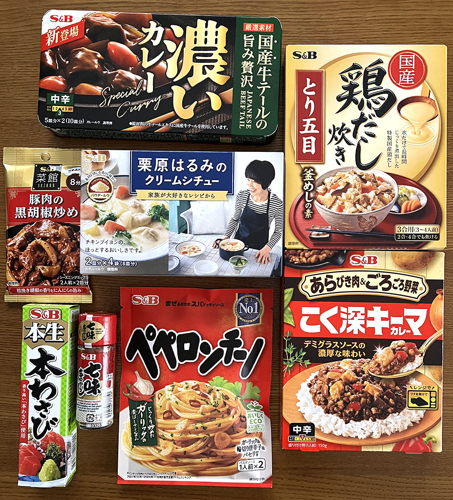 ヱスビー食品(株) [2805] 株主優待 X Facebook はてブ LINE コピー 2025.11.232025.11.26 エスビー食品から自社製品詰め合わせが届きました。継続保有3年以上で2,000円相当です。家族が喜ぶシチューの素が入っていて幸せ。 本生本わさび 七味唐からし 15g 菜館シーズニング 豚肉の黒胡椒炒め 栗原はるみのクリームシチュー 濃いカレー 中辛 あらびき肉&ごろごろ野菜 こく深キーマカレー 中辛 まぜるだけのスパゲッティソース ペペロンチーノ 鶏だし炊き とり五目釜めしの素