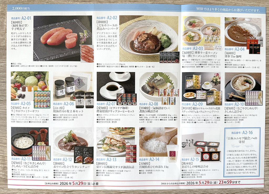 内容は、自社国内工場所在県の名産食料品、あるいは寄付とのこと。
