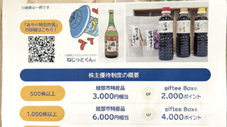 株主優待 日東精工(株) [5957] 日東精工から、「株主優待のご案内」と「株主様ご優待カード」が届きました。500株以上の保有で、綾部市特産品3,000円相当か、giftee Box(R)のデジタルギフト2,000円をいただけます。汎用性があるのはデジタルギフトですけど、1.... 2026.03.29 株主優待